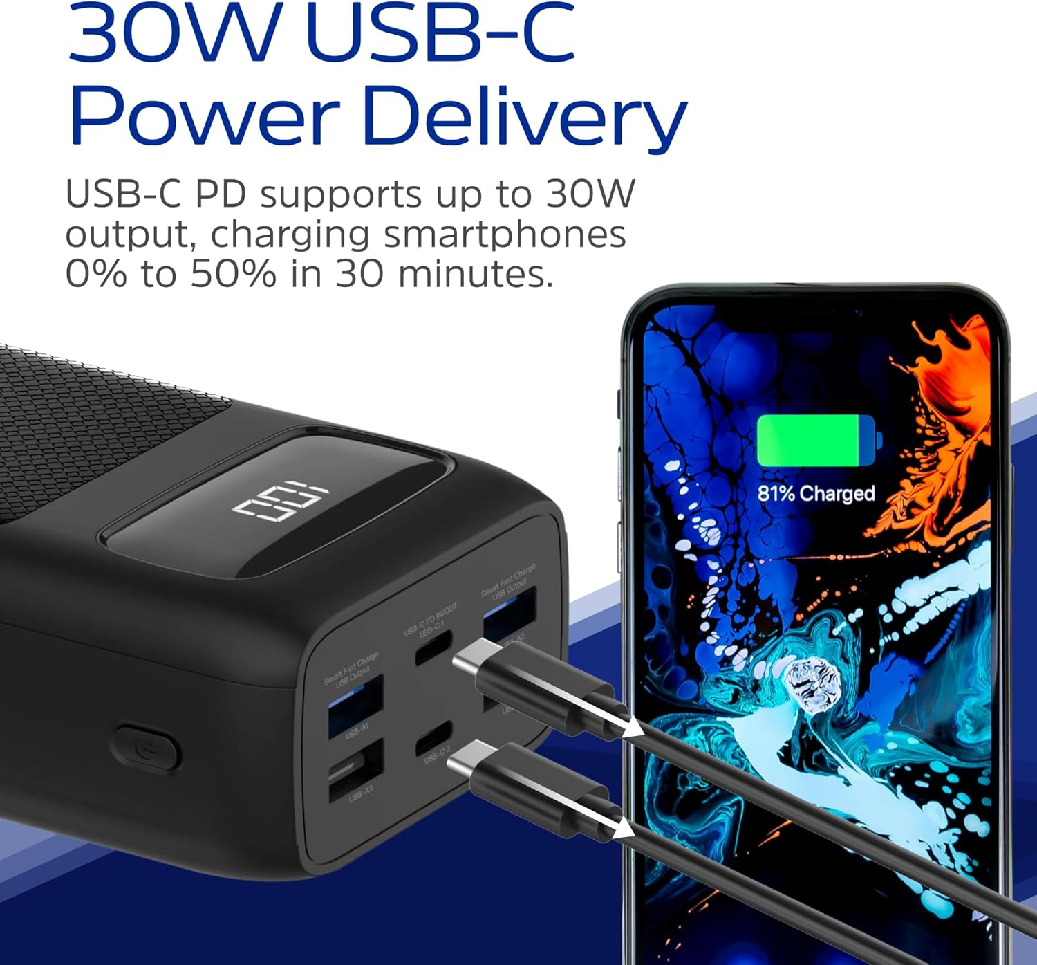 | سرعة الشحن للباور بانك | يدعم الإدخال السريع (غالباً $18\text{W}$) لتقليل وقت إعادة شحن البطارية الكبيرة. |