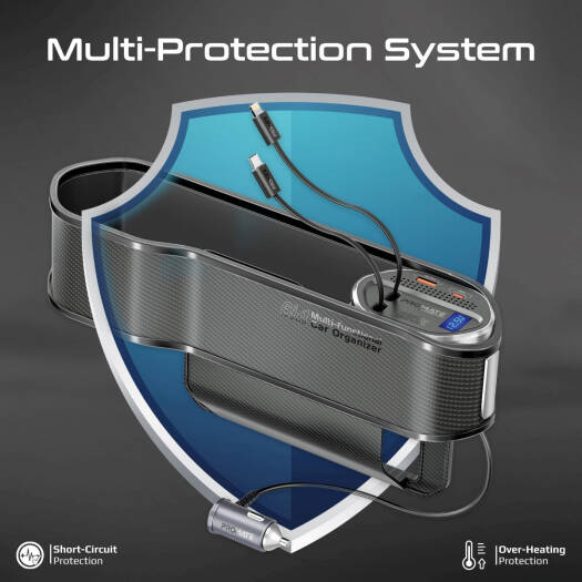 | الوظيفة الرئيسية | منظم داخلي للسيارة (مكان تخزين) ومحطة شحن متعددة المنافذ. |