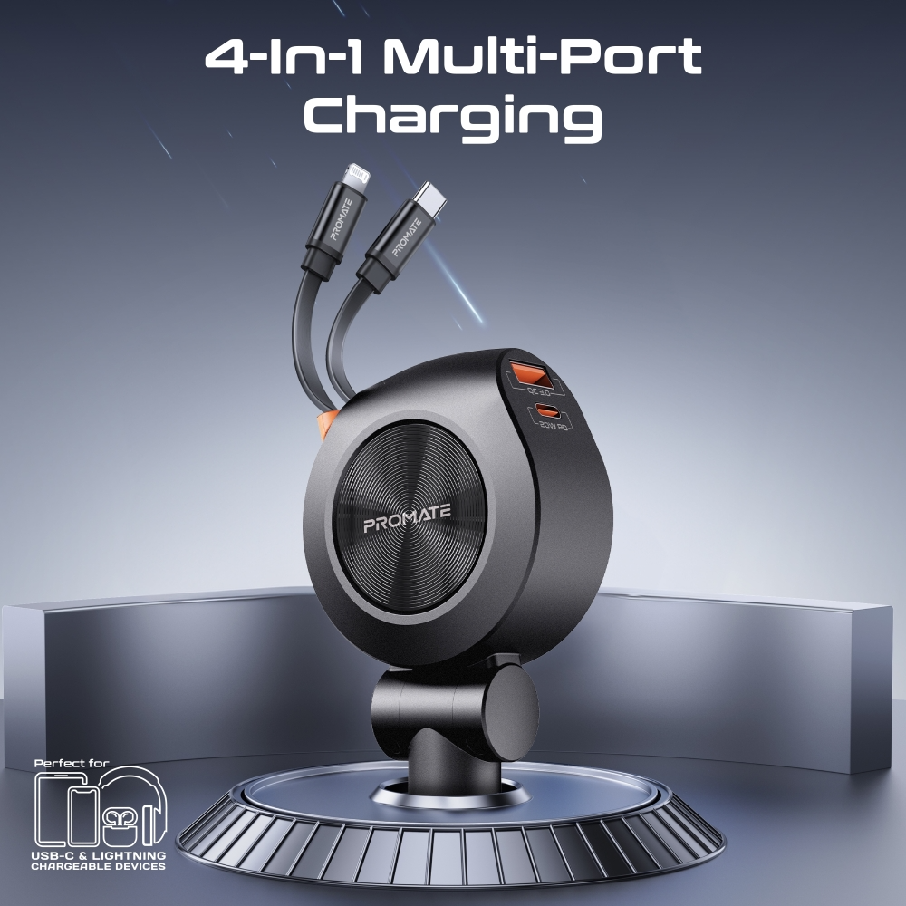 | الكابل المدمج 1 (USB-C) | قابل للسحب، يدعم PD | غالبًا ما يوفر 30 واط (30W) كحد أقصى لشحن الهواتف والأجهزة اللوحية. |