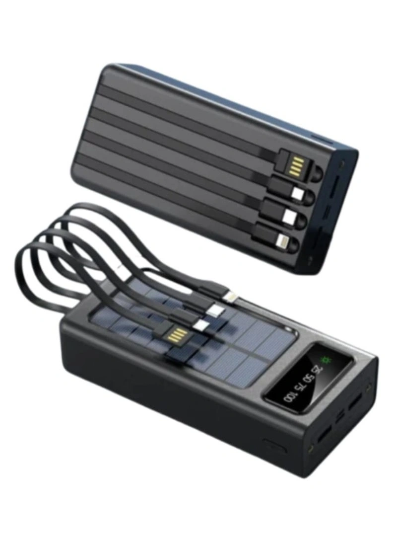 | الكابلات المدمجة | يحتوي على 4 كابلات مدمجة (يدعم آيفون، Type-C، Micro USB، و USB لشحن الباور بانك نفسه) |