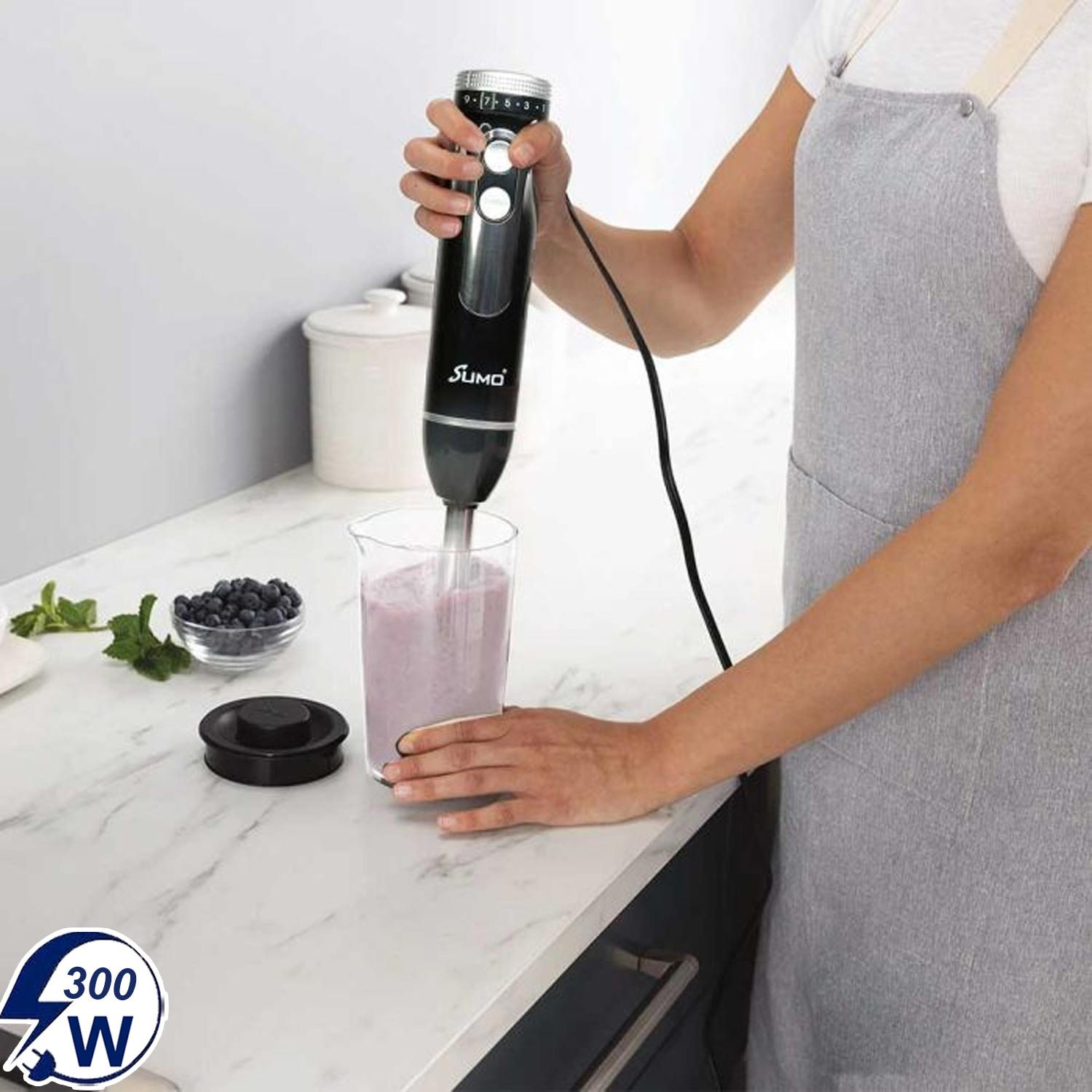 التصميم: خلاط يدوي غاطس (Immersion Blender) باللون الأسود مع ذراع خلط من الستانلس ستيل.