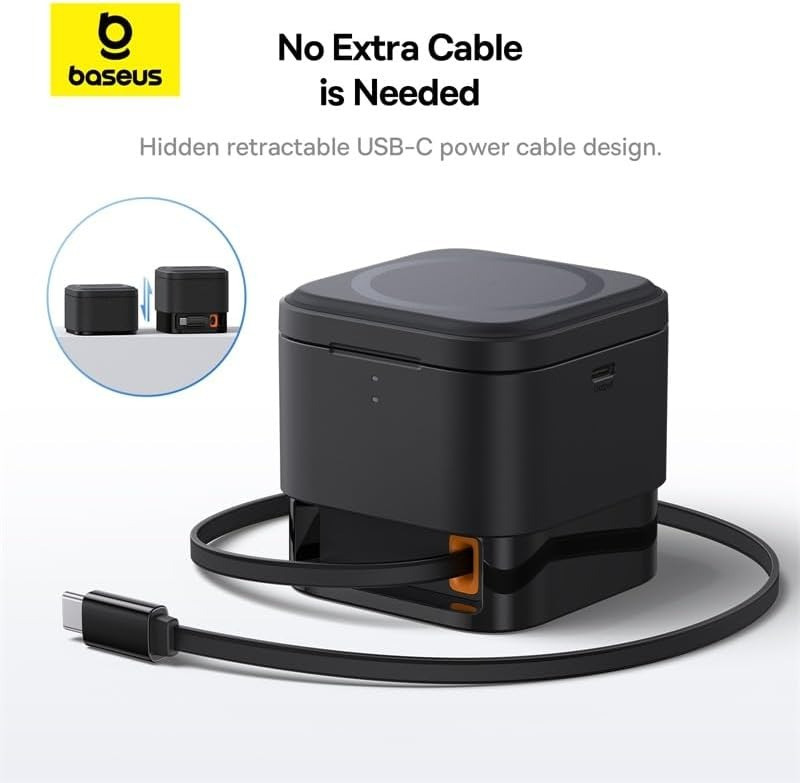 كابل قابل للسحب مدمج: يتضمن كيبل شحن عالي الطاقة قابل للسحب (غالباً USB-C)، مما يوفر شحنًا مرتبًا وفوريًا دون الحاجة لحمل كابلات خارجية.