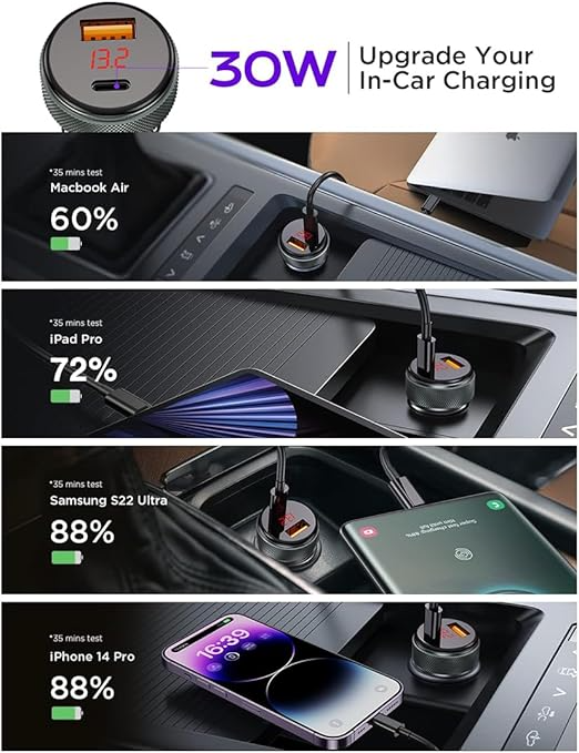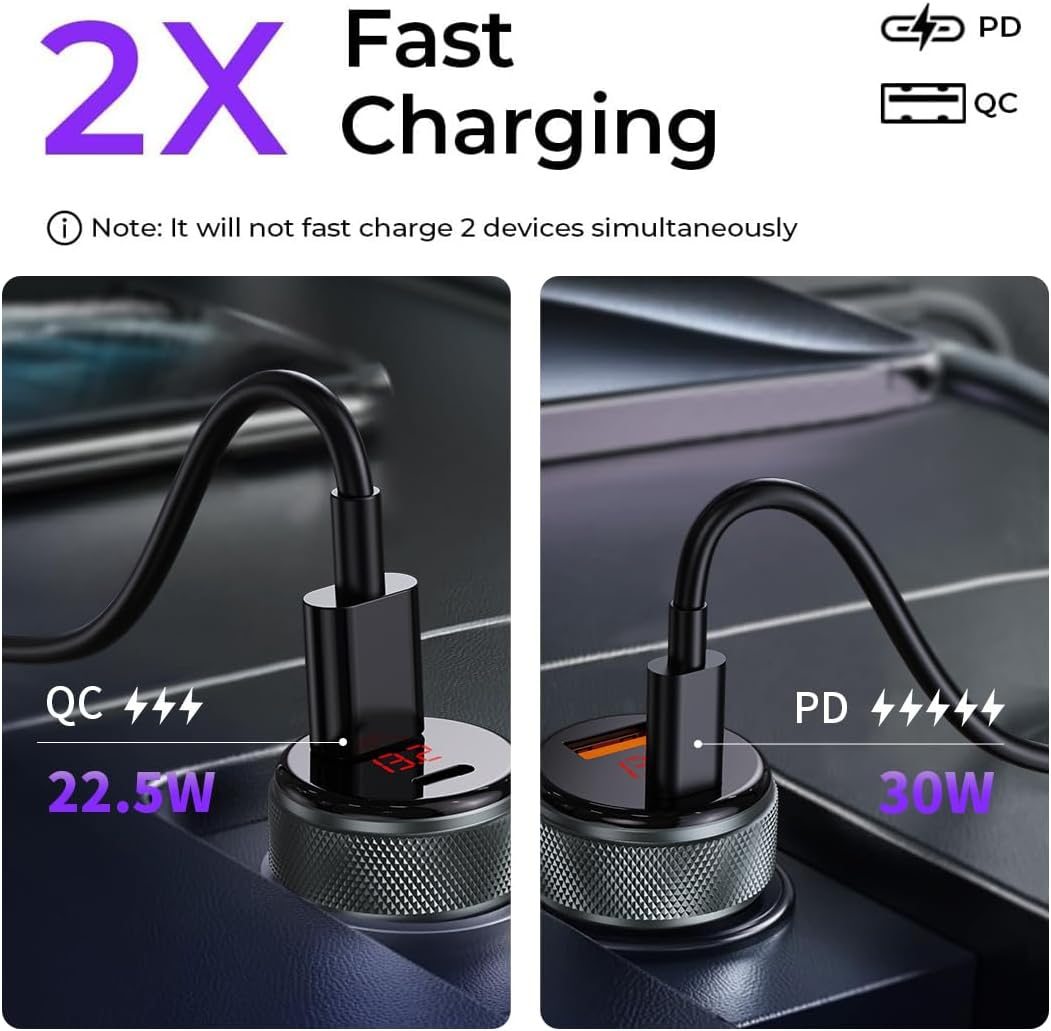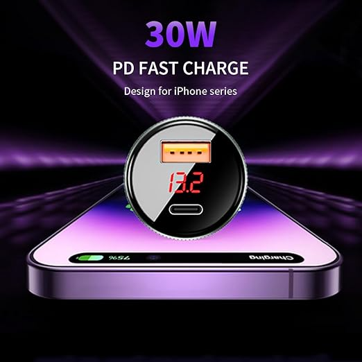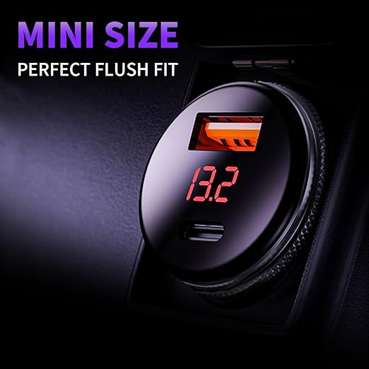 التصميم: مزود بشاشة رقمية (LED) لعرض قراءة الجهد (الفولت)، وجسم الشاحن يتميز بملمس محبب لسهولة التركيب والفك.