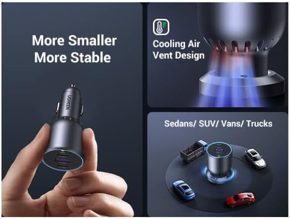 يوجرين شاحن سيارة 2 x يو اس بي سي بي دي و1 x يو اس بي- أ - 130 واط - أسود