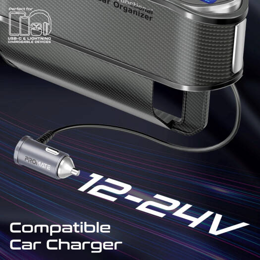 | الوظيفة الرئيسية | منظم داخلي للسيارة (مكان تخزين) ومحطة شحن متعددة المنافذ. |
