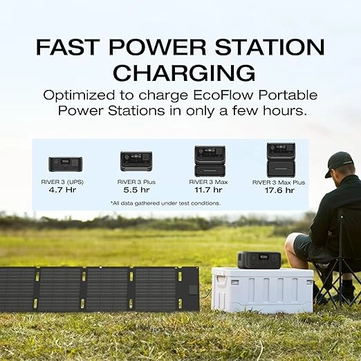 يُعدّ مولد الطاقة الشمسية RIVER 2 من EcoFlow إضافةً لا غنى عنها لرحلات التخييم أو رحلات المركبات الترفيهية. لوح الطاقة الشمسية المحمول الجديد بقدرة 60 واط هو الخيار الأخف وزنًا والأكثر ملاءمةً. بوزن 7.1 رطل فقط وتصميم قابل للطي، يُمكن حمله بسهولة في أي وقت.